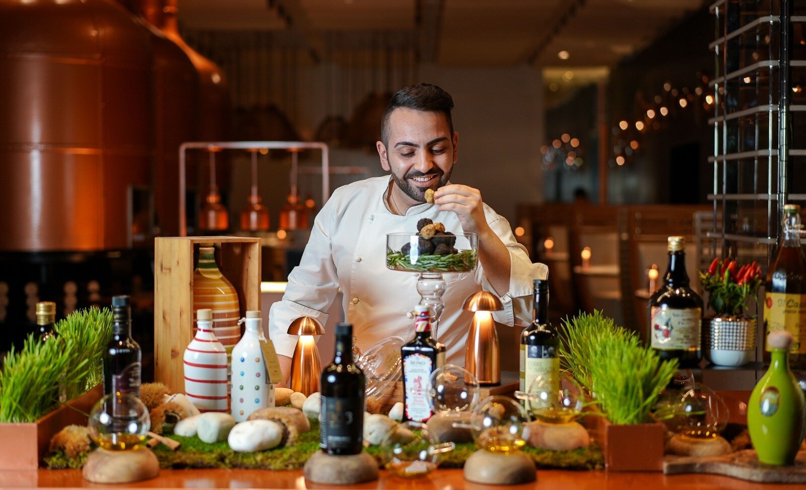 وأوضح أن القائمة الجديدة تتميز بزيت الزيتون الصافي أو كما يقال "الذهب السائل" الذي تم إنتاجه خلال موسم حصاد الزيتون الخريفي في إيطاليا، لافتا إلى أنه إلى جانب قائمة الطعام الخاصة، سيتمتع الضيوف بالخدمة الشخصية لتذوق واختبار عينات فطر الكَمْأة.