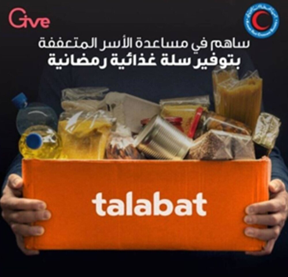 وحقق التعاون مع منصة "GIVE" نجاحاً كبيراً، حيث تمت إعالة أكثر من 350 أسرة محتاجة بالمواد الغذائية الأساسية للشهر الفضيل داخل الكويت، بالتعاون مع جمعية الهلال الأحمر الكويتي، وتم التبرع بأكثر من 16 ألف وجبة إفطار صائم مع عدة جهات خيرية، حيث تمكن عملاء منصة "طلبات" الإلكترونية من التبرع بسهولة.
